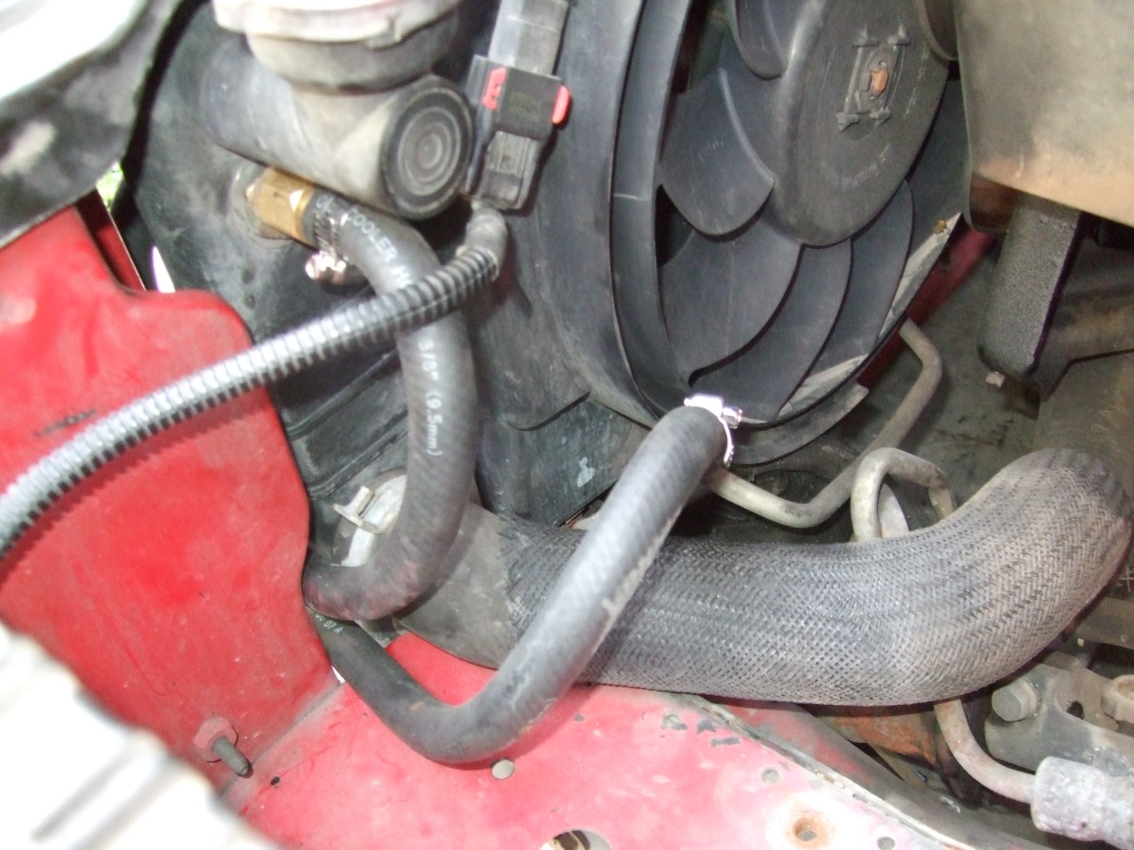 IMPORTANT NOTE: The threads on the connector are too long and don't thread on far enough! I had to remove the washer located under the nut you can see in the picture. Otherwise it leaked fluid! So remove the nut and pull off the washer and then replace the nut. The nut must be tight enough so fluid doesn't leak out.